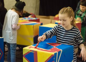 Wir gehen in die letzte Runde. Nun werden die Elemente fertiggestellt, damit es losgehen kann, unseren Colour Me Bauhaus – Wagen zu gestalten. Bis dahin – — > die Kids rocken weiter: Colour Me Bauhaus.